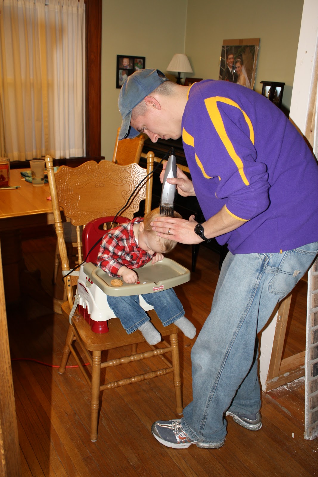 We decided to embark on yet another house project last month. It all started when we decided to get a new TV. We had always thought about doing this little project but we didn't know it was going to happen so soon! :) Anyways, we had been saving some money, and had been wanting to get a new HD TV, and Erik found a really good deal for one online that was the right size and had all the right numbers on what he was looking for etc., so we decided to go for it. Well the problem with this TV was that it didn't fit in our current TV stand (pictured below on the left side of the picture), so that meant we had to get rid of it. Then since we were getting rid of the TV stand (which was a concern that we would be able to sell it), we decided that we should then take down the wall separating our living room from the dining room. We knew it wasn't a support wall because you could tell that it had been added later and it wasn't there when the house was built. See, the upstairs in our house wasn't part of the original house, it was added later and we think this wall was added when they did that. You could also see that the moulding by the ceiling went through the wall and the woodwork didn't match the rest of the house either. The last thing you could see is that the hardwood flooring when right under the wall and didn't stop at the wall. I was a little nervous about this at first, because I kind of like the idea of defined spaces and I thought taking down the wall would mean we wouldn't have a dining room, but we were going to do it. So the last weekend of spring break, Erik started taking down the sheet rock off the wall. The slight problem with us doing this project is that it would require some re-wiring of light switches. The dining room light switch was on the right side of the wall and the living room light switch was on the left side of the wall. This is where we called my wonderful Uncle Nick once again to come and help us! :) So, Erik and Uncle Nick spent the following Saturday re-wiring the two light switches. It took a little work, as they had to go up in the attic and put a couple holes in the wall, but it was worth it! The other stipulation with this project was that it had to be done by Kyler's family birthday party (which was on April 9th) and....we made it! Everything was painted and put back together by that day-and it was great to have everything so open for the party because we had 25 people over! :) More to come on Kyler's bday in the next post! :) We also were able to get rid of the entertainment center because my Aunt bought it from us-that worked out great too! Here are some pictures from the project!