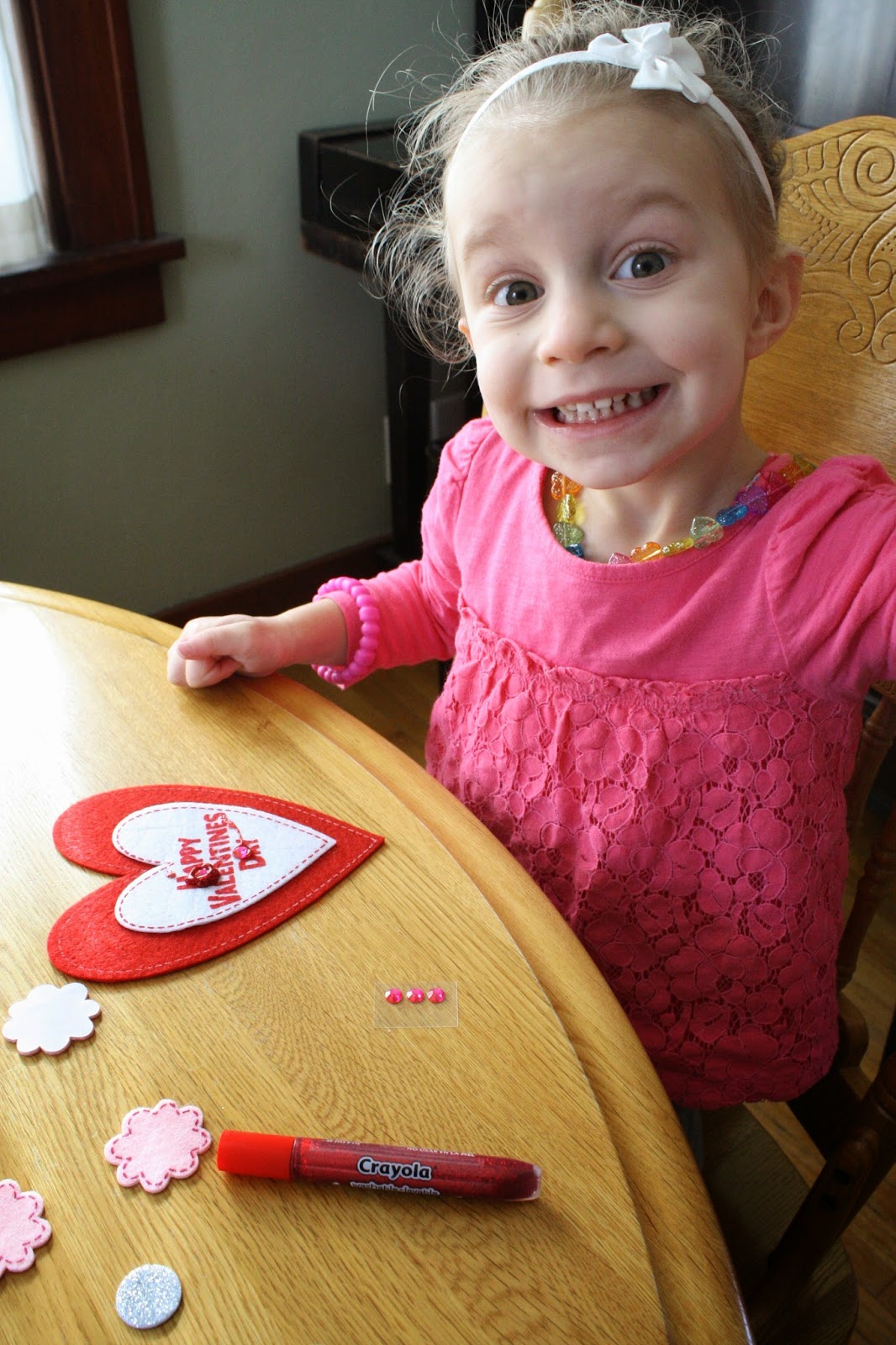 2/3-We decorated some Valentines today! Kyler and Norah have really been into making things and doing "crafty" activities or "projects" this winter. It has been fun to see their creations at their different ages. Thanks to the Target dollar bins, I have found quite a few craft activities for them to work on! Here are some Valentines ones we decorated today!